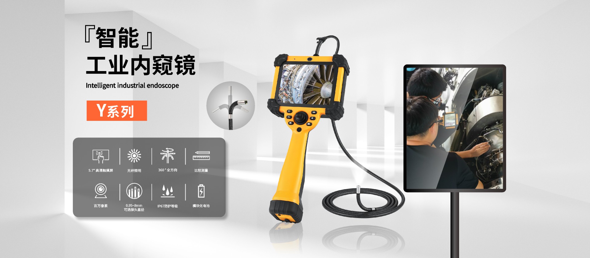優(yōu)勢特點(diǎn):快速更換管線、百萬像素、360°旋轉(zhuǎn)探頭、光纖照明